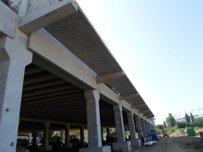 Structure: The building structural system consist of reinforced concrete (precast) framed building with trapezoidal profile roof system and two adjoining steel canopies - main entrance canopy and warehouse canopy.