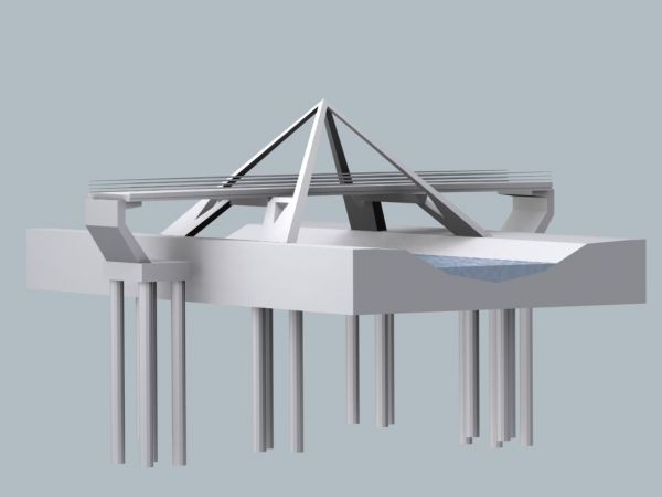 Structură de rezistenţă: cadru central din beton armat cu formă piramidală şi grinzi pretensionate cu suprabetonare din beton armat